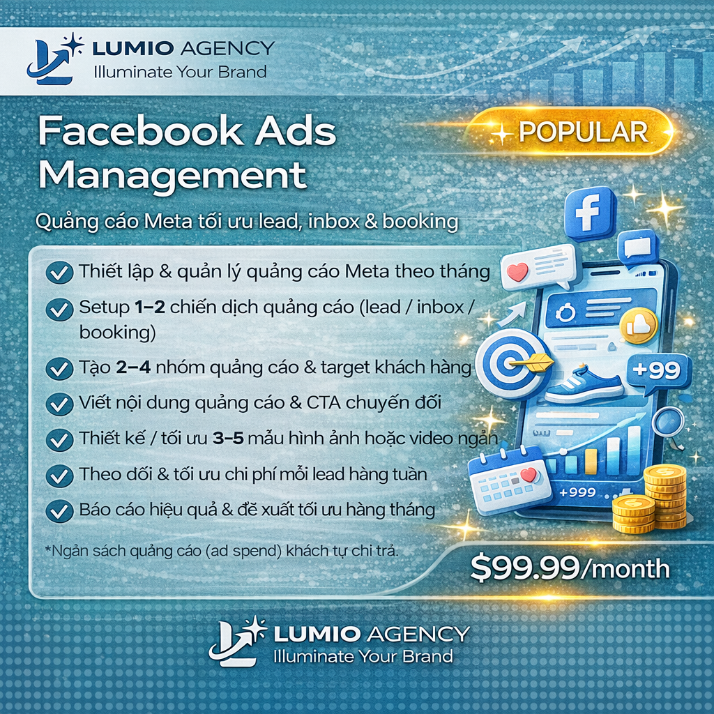Gói Facebook Ads giúp doanh nghiệp tạo lead, inbox và booking hiệu quả.