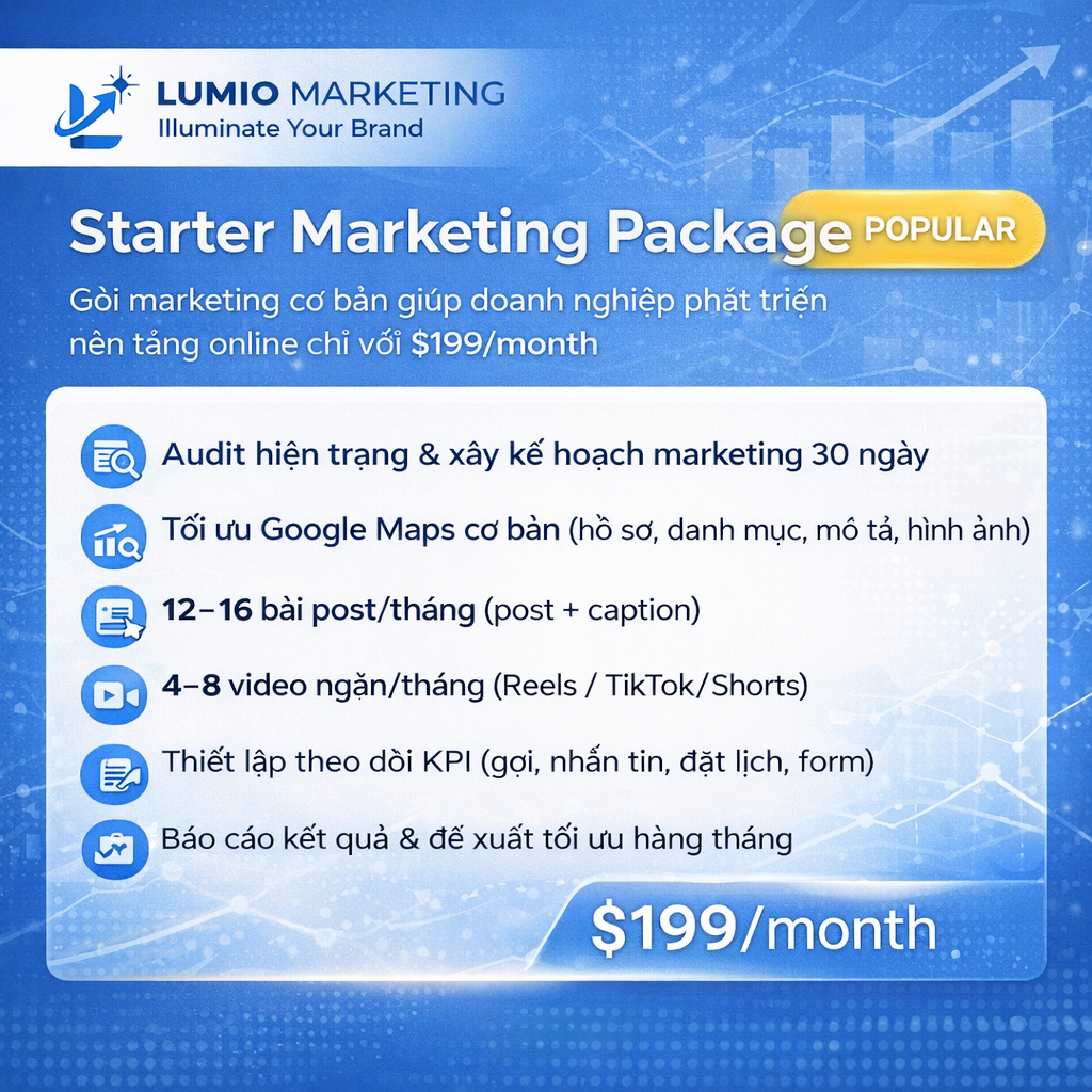 Gói Starter giúp doanh nghiệp bắt đầu marketing bài bản và tạo nền tảng tăng trưởng ổn định.