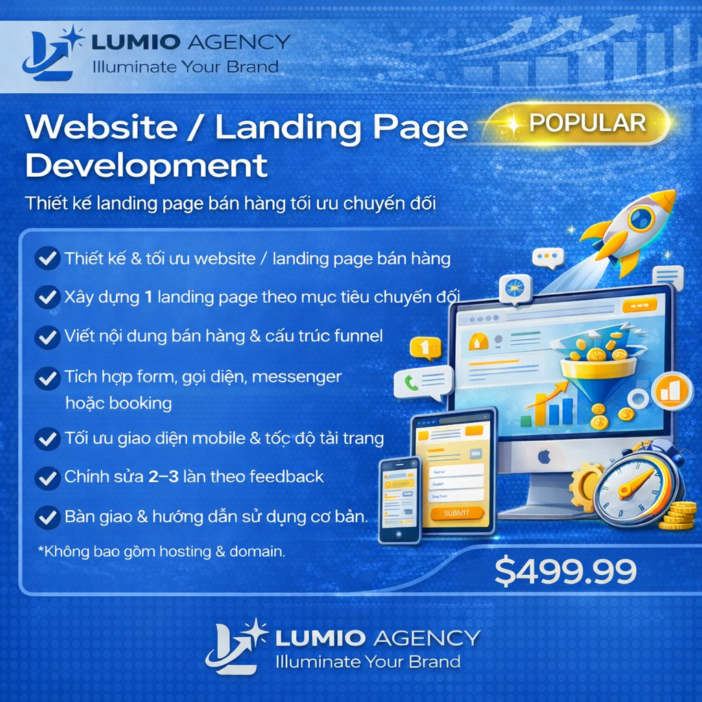 Gói Website / Landing Page giúp doanh nghiệp tạo trang bán hàng tối ưu chuyển đổi.